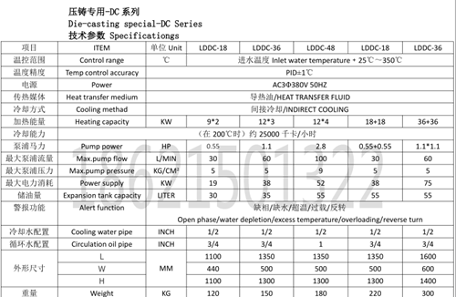 壓鑄模溫機,最高使用溫度達到370℃,控溫,導熱速度快,。具有控溫范圍廣泛,及結構緊湊,熱確定性好,升溫速度快等優點。廣泛應用于鋁合金、鋅合金、鎂合金等壓鑄行業,在汽車零部件加工行業中會經常使用。