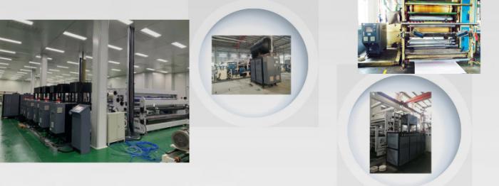 根據工藝要求而量身定制的一款雙系統合為一體的覆膜雙溫模溫機,輥筒專用雙溫油溫機由于其具有兩套獨立系統,特別適合于前后輥筒不同溫度,集中控制,更方便控制和操作,占地面積更小,接管更方便,更有利于車間的整潔。輥筒表面溫度是否一致和穩定是影響產品的關鍵因素,以導熱油為循環介質的模溫機,是應用于輥筒控溫系統的專用設備,具有流速快、控溫精度高、熱量損失小、占地面積小以及安裝方便等特點。模溫機運行過程:高溫導熱油從壓延機輥筒回到模溫機后,控制系統會根據設定溫度以及導熱油的實際溫度進行判斷,并啟動加熱管進行加熱或電磁閥進行冷卻,循環油泵將導熱油輸送到壓延機輥筒進行熱交換,達到控制輥筒表面溫度的目的,然后導熱油返回到模溫機進入下一次循環。