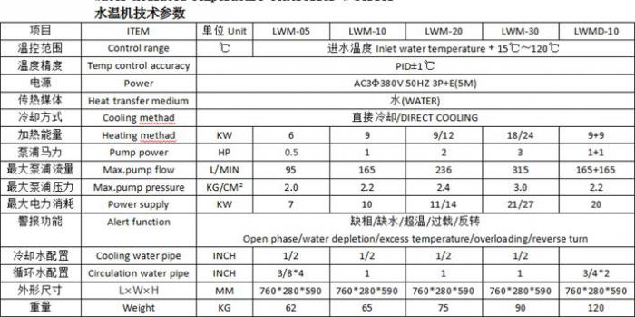 模具水循環(huán)模溫機(jī)用來控制模具的溫度,主要對模具進(jìn)行加熱、恒溫,將水加熱至產(chǎn)品成型所需要的溫度,送入模具回圈,迅速提高模具溫度,以提高成型效率。水循環(huán)模溫機(jī)包括120度水溫機(jī)、150度水溫機(jī)和180度水溫機(jī)三種機(jī)型,規(guī)格有6KW-1200KW可供選擇.