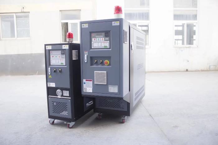 模溫機有油循環模溫機和水式模溫機之分,油溫機就是以導熱油做為傳熱媒介的模溫機,水溫機是以導熱水作為傳熱媒介的模溫機。導熱油加熱器的型號及規格較多,在選購時,盡量提供詳細的工藝情況給生產廠家,根據需要實際生產工藝來確定,加熱功率及泵浦功率,避免出現功率過大或不足的現象產生。