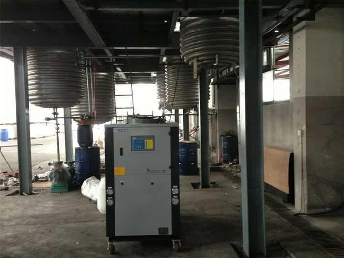 反應釜專用冷水機根據工藝的不同分為常溫型冷水機和低溫型冷水機,反應釜冷水機是一種通過反應釜夾層或者是反應釜內部的盤管走循環冷凍水,帶走反應釜化學反應產生的熱量的冷熱溫控設備.主要原理是通過冷媒的蒸發和冷凝將普通的水制冷后,再通過泵把冷凍水打到反應釜的夾層或者盤管,冷凍水再把熱量帶出反應釜,完成整個降溫工藝.反應釜冷水機的主要作用就是:輔助反應釜降溫,冷卻,恒溫。