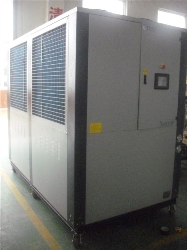 壓縮機: 采用谷輪高品質壓縮機,寧靜,省電耐用。冷凝器:采用殼管式無縫齒狀內螺銅管,散熱效果特強。蒸發器:采用盤管式(可選殼管式)加強型銅管率設計,能將冷媒快速蒸發,產生低溫冰水。不銹鋼冰水泵:采用高流量冰水泵,運轉順暢,不漏水,聲音小。控制系統:采用施耐德電氣組件,采用微電腦控制系統,可線控及報警信息輸出。新穎設計:外形新穎,結構堅固,重心穩,不不漏水,永保廠房地面干爽。恒溫型特色:能將溫度控制在正負1度以內。控制系統ON/OFF主電源開關。內置保護,超(高、低)溫和流量雙重保護,配備流量保護開關,當水泵發生故障或水量過少時,流量開關運作,自動斷開電源,總電源無熔絲,斷電器。高低壓開關保護,電源欠相開關防凍保護,壓縮機過載保護,冰水泵過載保護。冷卻泵過載保護,故障指示燈系統,故障報警系統,冰水By-pass泄壓回路,多機延時啟動控制系統。