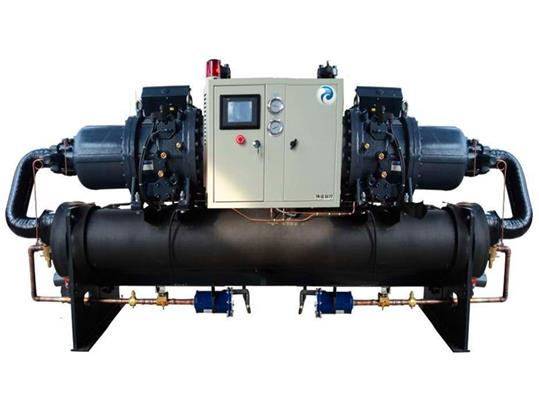 運行維護費用低:機組可依據負載的需求實行智能化程序控制:0-25-50-75-的容量控制,節省能源,螺桿式壓縮機的零部件總數只有往復式的十分之一,結構簡單,易損件少,故障率極低,內置油分離器,采用三段式濾油機構,油氣分離,包覆式設計,可將壓縮機運轉噪音降到最低,螺桿式冷水機壓縮機頭無故障運行可達40000小時以上。